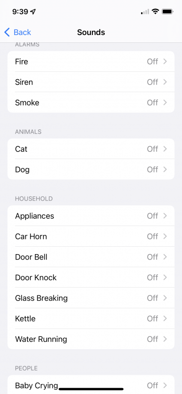 Sound Recognition is pretty cool. Basically, you can choose sounds for your iPhone to listen for and then notify you when it hears those sounds. For example, it can listen for smoke alarms, dogs barking, door bells, glass breaking, water running or a baby crying. Once you activate Sound Recognition you can choose from a list of sounds and when your iPhone hears these sounds it can notify you with a ring ton, a special alert tone and/or vibration.